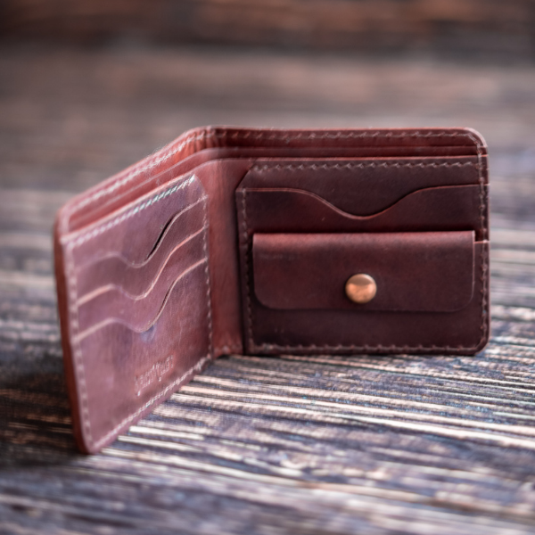 Classic yet minimal.\nModern Vintage design.\nModern smooth edges.\n100% leather, no lining.\n2 cash slot.\n6 card slots.\nSeparate coin slot.\nTop Grain Leather.\n Boston wallet is our most functional, beautifully designed and crafted wallet in our collection. This modern vintage wallet is all you need to organise your cards, cash, IDs and coins in one place.\nOnce you have this wallet it will be a companion for decades to come and get prettier with time and ageing. \nMaterials\n4 0z (1.6 mm) thick semi vegetable tanned hand waxed leather.\nBrass snap button\nHigh quality Japanese nylon thread.\nSpace\n6 card slots.\n2 cash slots.\n1 Coin slot.\nDimensions \nHeight – 3.25″\nLength – 4.5″\nCall/ Whatsapp: +91 90412 20044\nEmail: contact@beastcraft.in