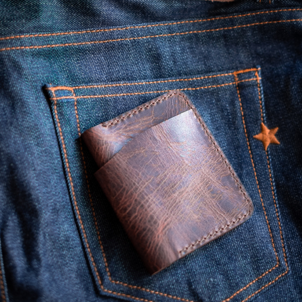 Hybrid Design. \nCard Holder cum Wallet.\nVertical wallet.\n100% leather, no lining.\n1 cash slot.\n4 large card slots.\nTop Grain Leather.\n\nMany of our customers asked for a wallet with features and size of a card holder and this is how we designed the Glasgow Mini Wallet.\nVery simple minimalist Bi-fold design with a cash slot on the back and 4 large sized card slots on the inside which can hold multiple cards per slot.\nMaterials\n4 0z (1.6 mm) thick vegetable tanned hand waxed leather.\nHigh quality Japanese nylon thread.\nSpace\n4 Card slots. (each card slot is large enough to hold multiple cards)\n1 Cash slot.\nDimensions \nHeight – 4″\nLength – 3.25″\nCall/ Whatsapp: +91 90412 20044\nEmail: contact@beastcraft.in