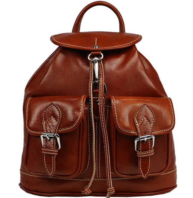 Dark tan Moroccan leather bag handmade and stitched with great care by Moroccan artisans in Fez Tannery creating this Beautiful Moroccan leather backpack design which is comfortable on the back due to its meticulously made straps. This real leather Moroccan backpack contains multi-pockets To utilize all backpack space.