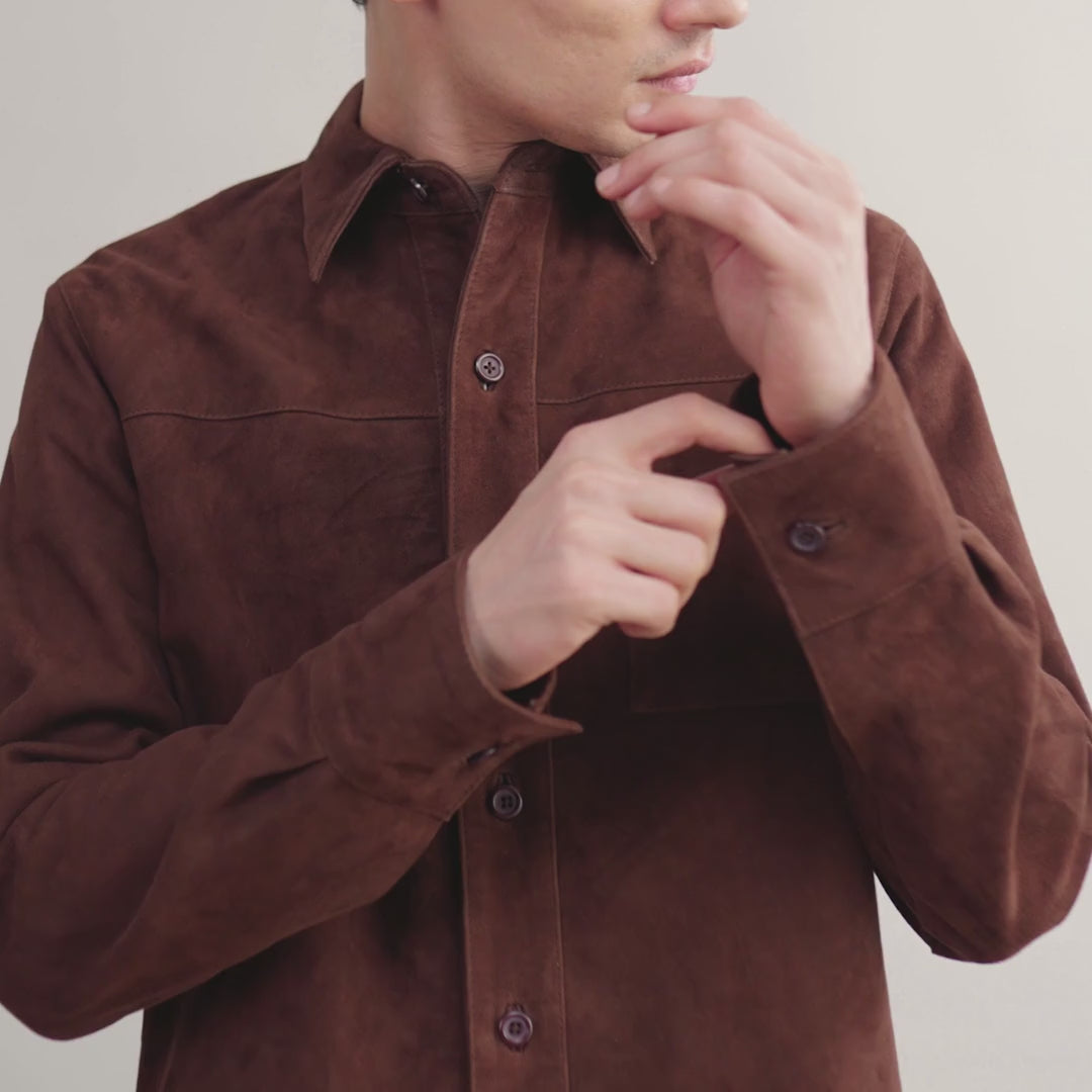 Introducing the Scout Mocha Suede Leather Shirt – Handcrafted Luxury for Men
