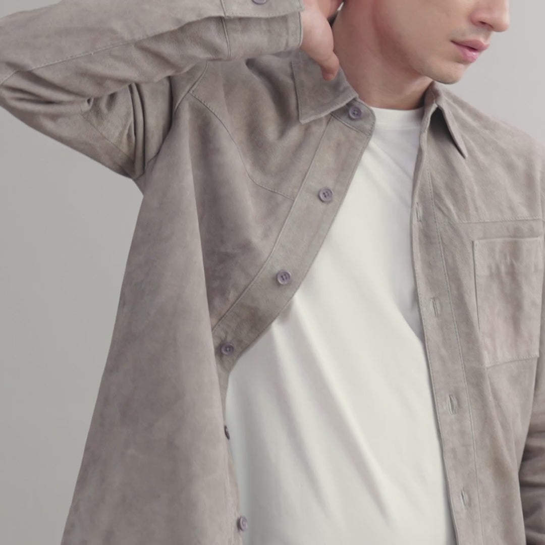 Be the first to review “Scout Grey Suede Leather Shirt”